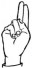 На ћирилици написано МИЛА МЕЧАНИН састоји се из 11 слова [?]. Исписано ћириличном једноручном азбуком за глувонеме: